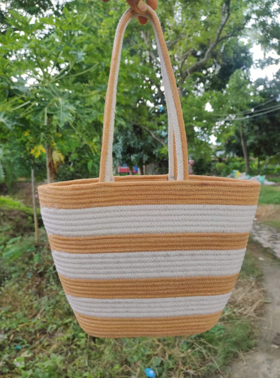Add charm to your everyday look with this elegant Handcrafted Cotton Tote Bag, skillfully made by artisans using eco-friendly cotton rope. With its soft texture, sturdy structure, and earthy tones, this bag perfectly balances modern minimalism with handmade warmth.