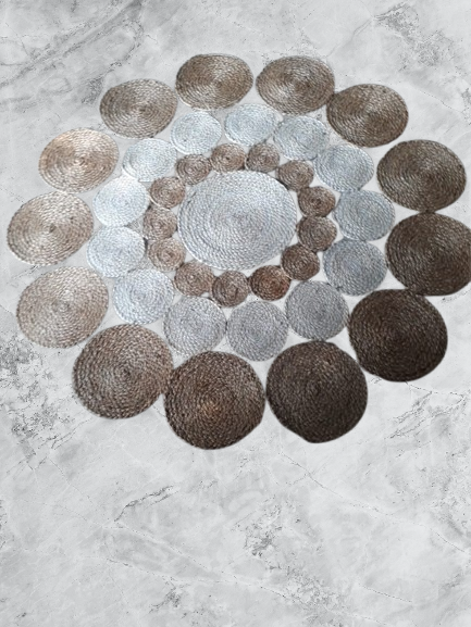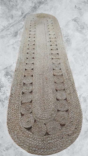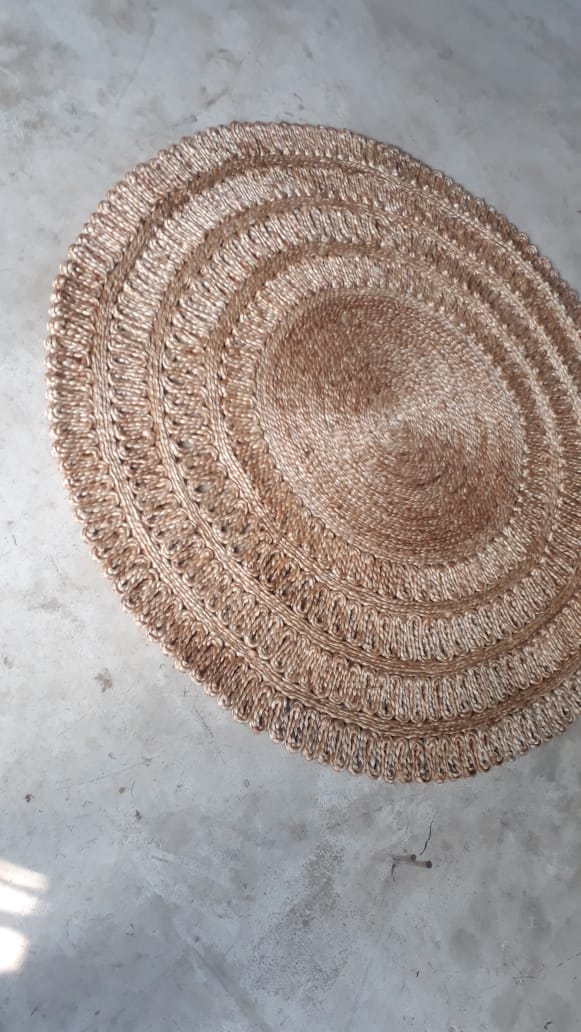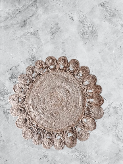 Add natural warmth and texture to your living space with this stunning Handcrafted Round Jute Rug. Expertly woven from durable natural jute fibers, this rug features a beautifully detailed circular pattern with braided accents and decorative cutwork, making it a standout piece for any room.